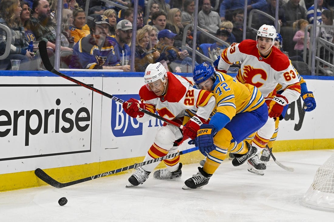 The injury-depleted Blues have earned points in 12 of their last 15 games, with a 9-3-3 mark in that stretch. The Flames have points in 15 of their last 19 games, with a 9-4-6 record during that span.