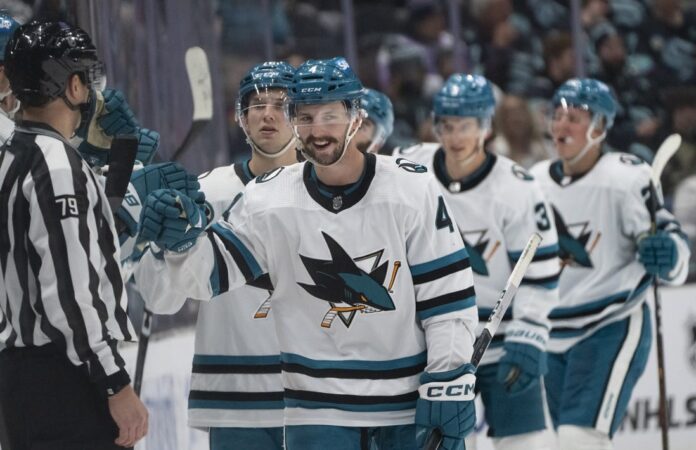 With the score tied 1-1, the Sharks scored two goals in 51 seconds late in the second period.