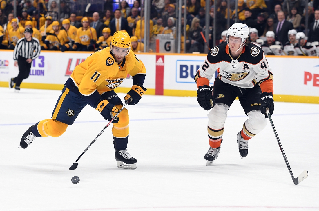 The Ducks killed back-to-back power plays midway through the first period, but Johansen scored 45 seconds after the second penalty expired to give Nashville a 1-0 lead.