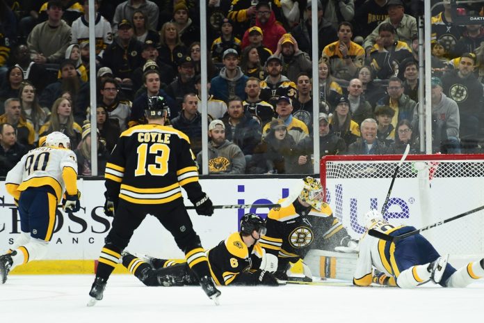 Jonathan Marchessault and Ryan O’Reilly scored back-to-back goals in a 1:03 span in the third period to propel the visiting Nashville Predators past the Boston Bruins 6-3 on Tuesday.