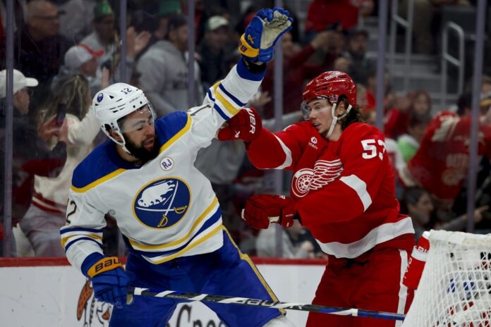 Buffalo’s Tage Thompson opened the scoring Saturday before Detroit netted four unanswered goals. The defeat was especially difficult for the Sabres, who could’ve pulled within a point a Red Wings team that had lost seven in a row, for the East’s final wild-card berth.