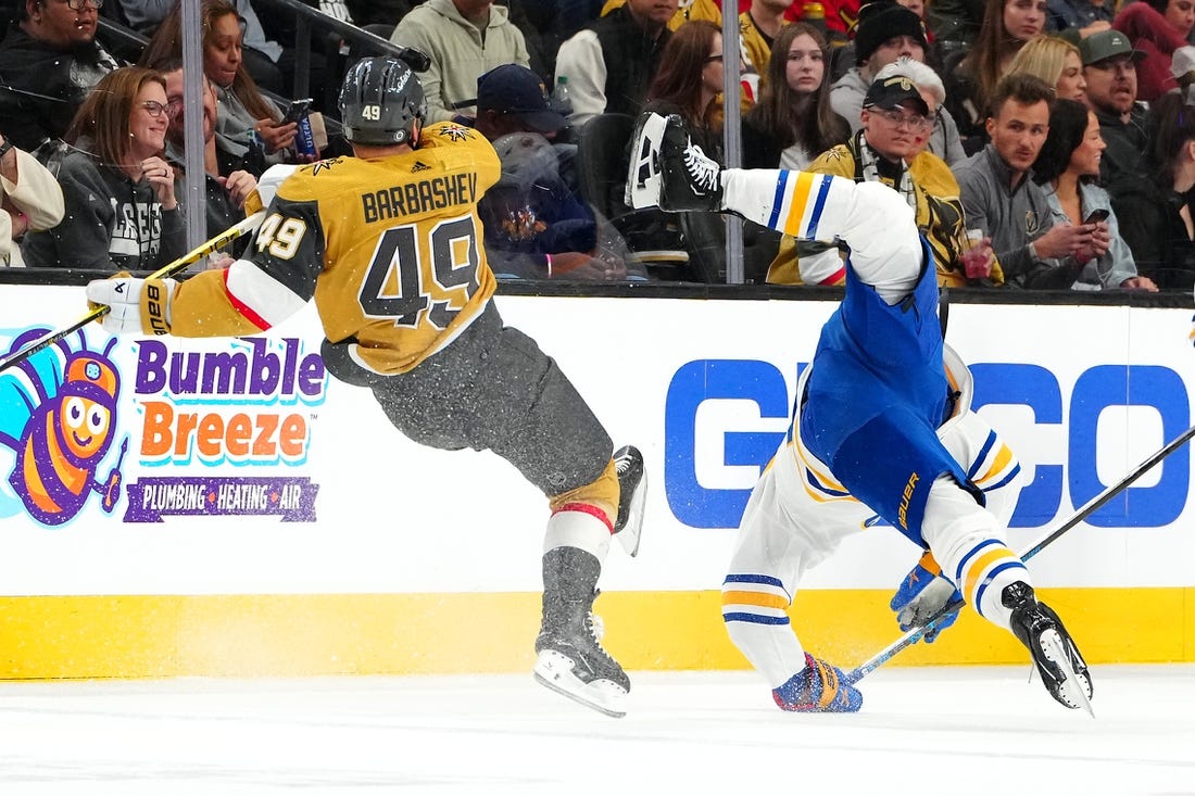 Buffalo took a 1-0 lead at the 7:42 mark of the second period when Cozens fired a wrist shot from the high slot through the legs of Vegas defenseman Brayden McNabb and past Thompson’s blocker side. It was the fifth goal of the season for Cozens and first in 12 games.