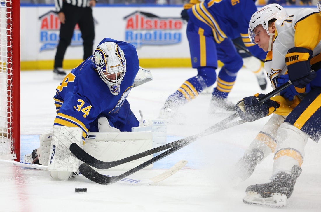 This will be the second of two regular-season meetings. Buffalo won the first 3-2 at home March 3, with Tage Thompson credited with the game-winning goal after the Golden Knights trimmed a 3-0 deficit to 3-2.