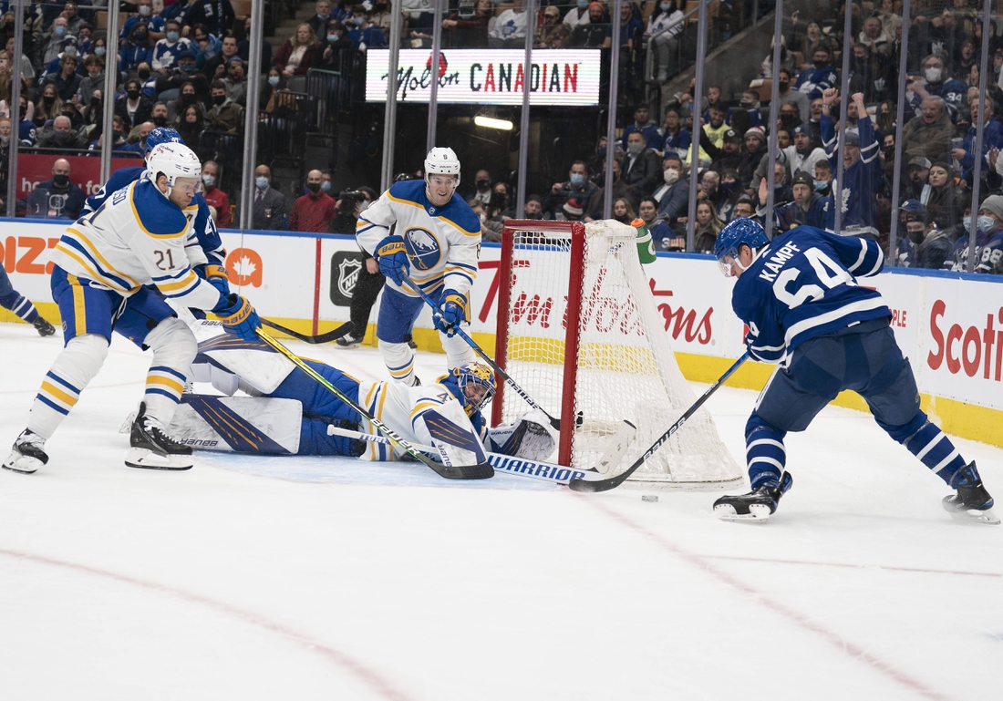 The Sabres survived the Maple Leafs’ first power play of the game after Okposo was called for hooking at 1:51 of the second period.