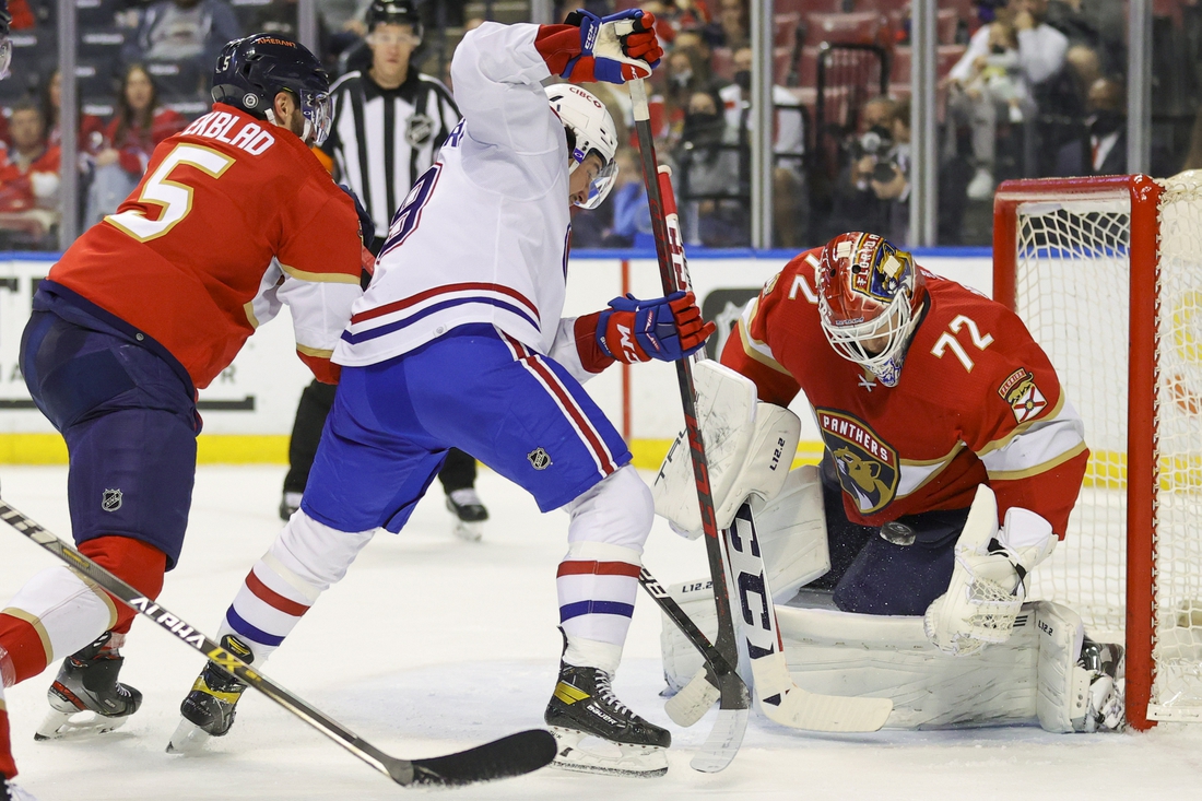 Florida took a 3-2 lead with 2:30 left in the second as Reinhart passed the puck from the right corner to Vatrano, who came charging in to the front of the net, reaching forward to deflect the puck past Montembeault.