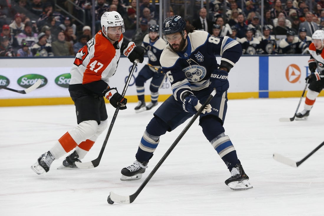 After Travis Konecny scored to complete his hat trick with 4:46 to play, Monahan regained the lead for Columbus after converting a feed from defenseman Damon Severson at the doorstep.