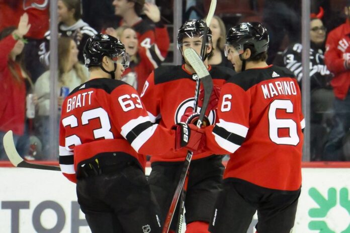 Hartman was whistled for slashing to generate the power play that led to the Devils’ game-tying goal fewer than four minutes later, when Bratt fed Toffoli in front of the net for a chip-in at the 6:10 mark.
