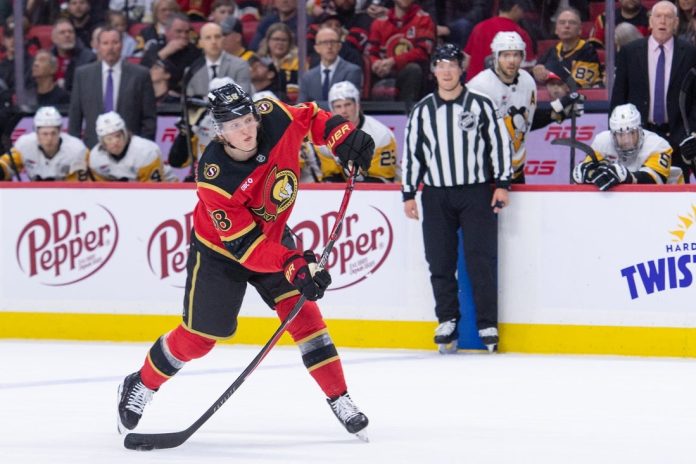 Drake Batherson, who brought his goal total to 29 with two tallies, said the loss was disappointing, “but we’ll take the point, and we got another big one against Tampa on Saturday.”
