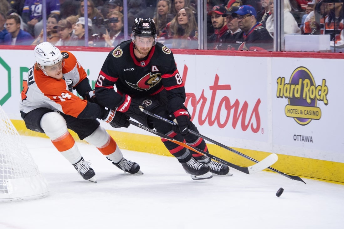 Former Flyers captain Claude Giroux notched his team-high-tying fourth assist of the season for Ottawa.