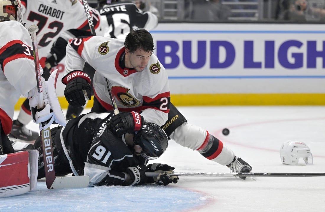 Brady Tkachuk and Alex DeBrincat also scored goals as Ottawa pulled off the Southern California sweep after defeating the Anaheim Ducks 5-1 on Friday. Cam Talbot had 25 saves for the Senators.