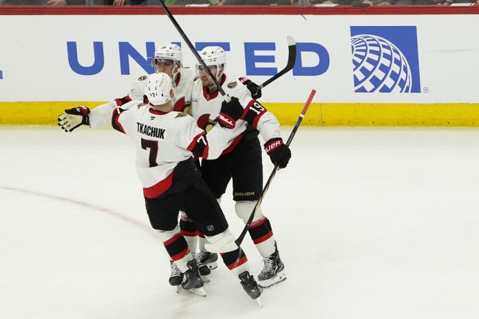 Ottawa answered 11 seconds later on Tkachuk’s deflection from the right circle of a Nick Jensen point shot but Panarin lifted a shot from the outer edge of the left circle past Ullmark to make it 3-1 following a defensive zone turnover by Amadio.