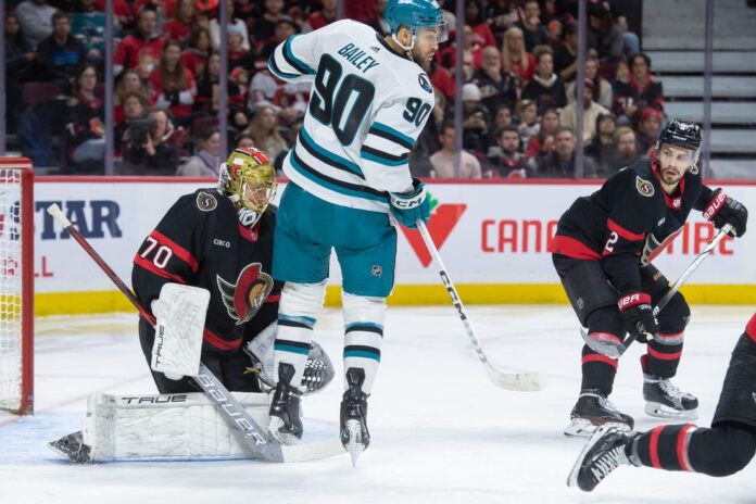 The Senators outshot the Sharks 22-4 in the middle period and led 4-3 after two periods.