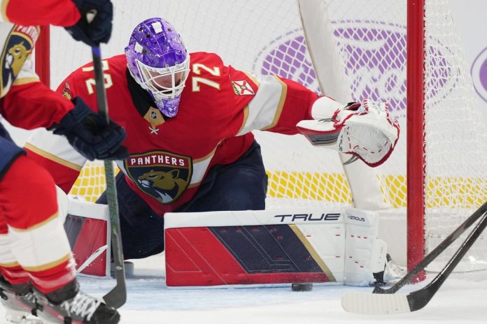 Florida benefited from a fortunate bounce to open the scoring with 5:01 remaining in the first period. Gustav Forsling’s cross-ice pass caromed off the stick of Winnipeg defenseman Dylan DeMelo and went into the net off the body of Samoskevich. The goal was Samoskevich’s third of the season.