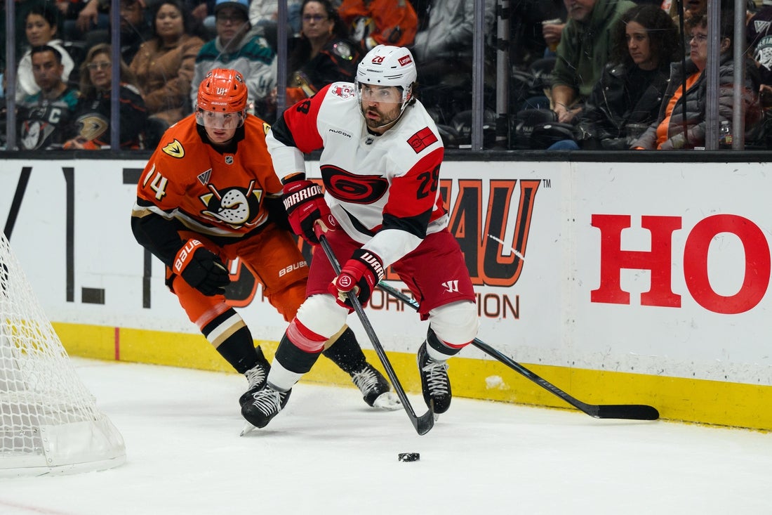 This was the second game of Carolina’s six-game road trip. Anaheim plays its next five games on the road.