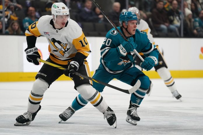 A 1-1 game was broken open 3:41 into the third period, as the Sharks capitalized on a Pittsburgh turnover. Tyler Toffoli cut off a pass in front of the Penguins’ net and quickly passed to Celebrini for the finish.