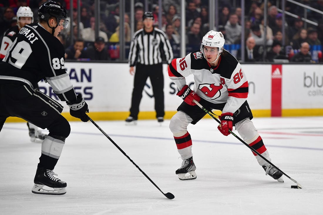 Jack Hughes, who had two assists against the Kings, has a team-high 28 goals and is second with 26 assists for 54 points, which are the most in Devils’ history through 43 games.