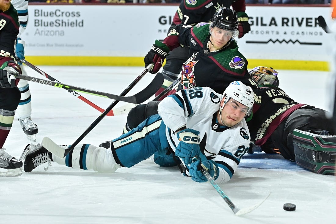 After Gregor completed his hat trick off assists from Kevin Labanc and Karlsson at the 14:47 mark, the Coyotes capped the scoring when Kelemen scored the first goal of his career with 4:50 left in the game. Jack McBain and Brett Ritchie assisted on the play.