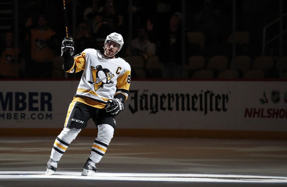 Crosby leads the NHL in even-strength points (31) entering play on Sunday.