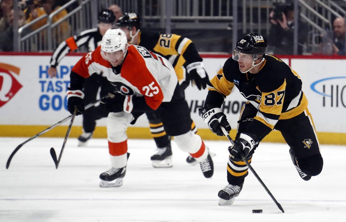 Sidney Crosby had a goal and three assists, Bryan Rust posted two goals and an assist and the Pittsburgh Penguins outlasted the visiting Philadelphia Flyers 7-6 on Sunday.