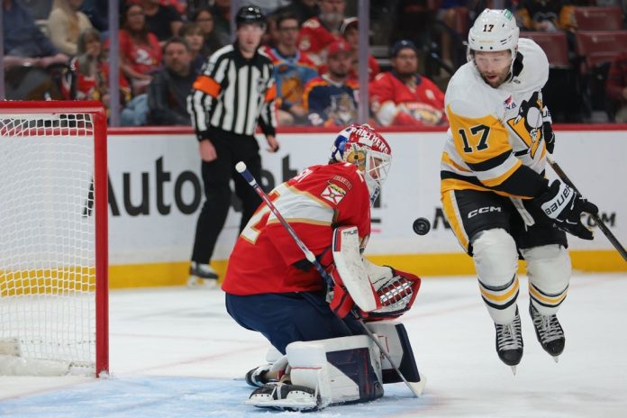 Pittsburgh made it 2-0 at 6:36 of the second after Karlsson’s initial shot from the point was stopped by Bobrovsky. This time, Rakell poked in the spinning puck before Bobrovsky could extend his right leg. Crosby earned a secondary assist.