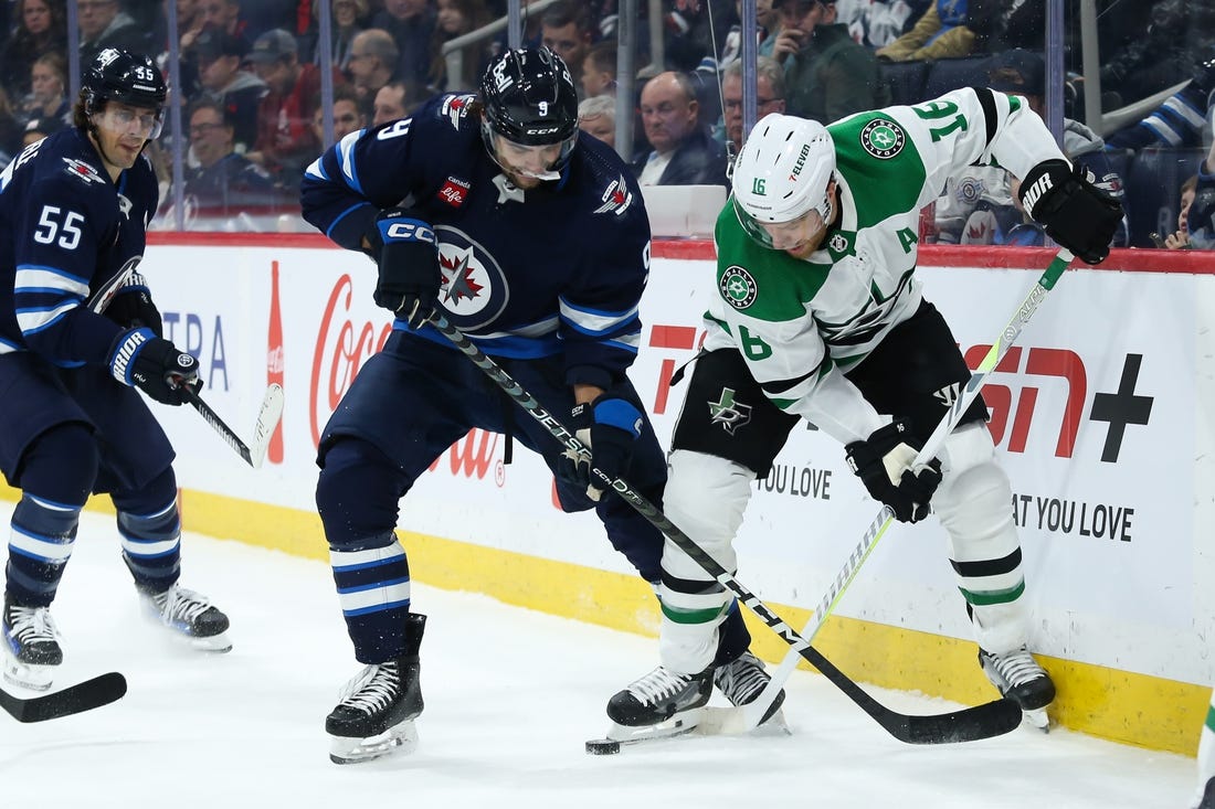 Wyatt Johnston collected a goal and an assist to lead the visiting Dallas Stars to a 3-2 victory over the Winnipeg Jets on Saturday and maintain their hold on top spot in the Central Division.