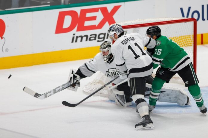 The Kings made it 4-1 at 1:11 of the third when Los Angeles won a faceoff in the Dallas zone and Fiala scored with a wrist shot through traffic from above the left circle.