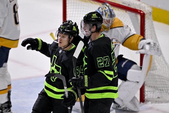 Wyatt Johnston extended his goal streak to six games to make it 4-1 at 9:45. Mavrik Bourque collected a loose puck by the bench and sent it up to Johnston, who stickhandled on the approach before slipping it by Annunen’s left pad.