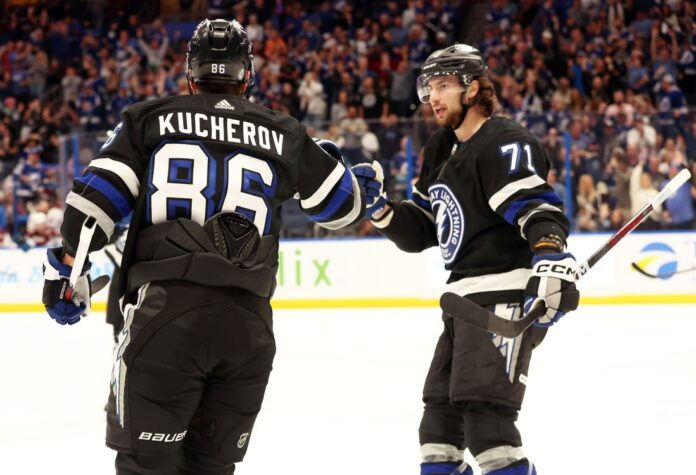 Nikita Kucherov helped lock down Thursday night’s home triumph by scoring twice, including his sixth game-winning tally, and posting an assist as he stretched his point streak to nine games.