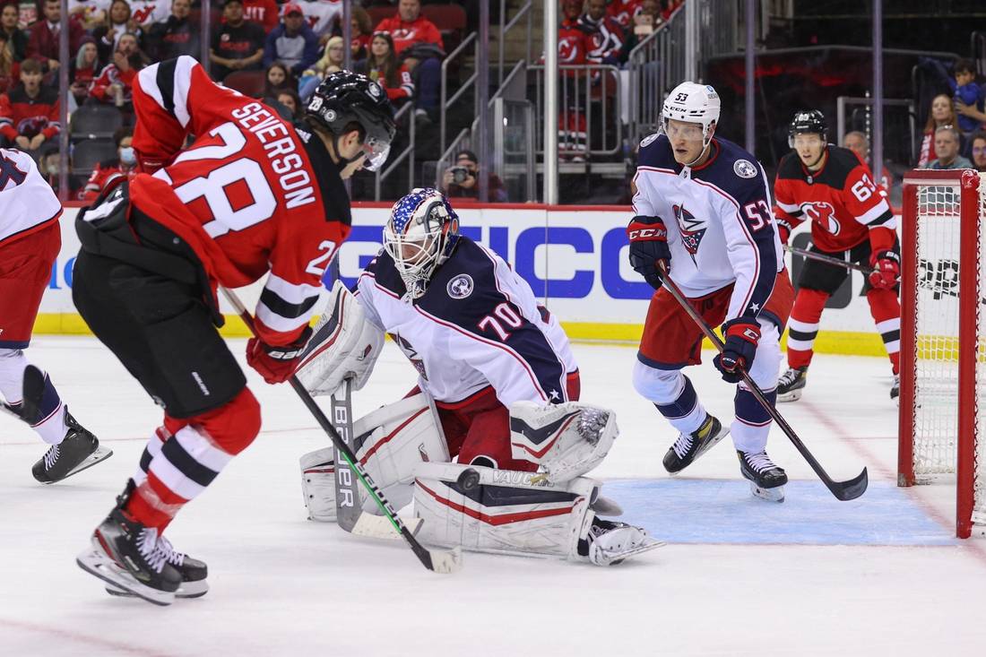 The Columbus Blue Jackets aim to put the brakes on their considerable slide Thursday when they visit the New Jersey Devils in Newark, N.J.