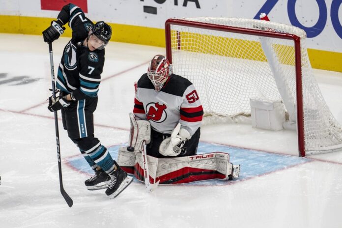 It’s unclear who will start in goal for San Jose after Mackenzie Blackwood left late in the first period of a 7-2 loss to the visiting New Jersey Devils on Tuesday because of a lower-body injury. Blackwood was placed on injured reserve and the Sharks called up Magnus Chrona to take his spot on the roster.