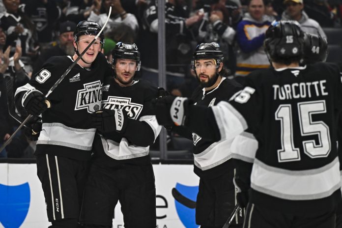 Andrei Kuzmenko, Anze Kopitar, Tanner Jeannot, Quinton Byfield and Kevin Fiala each had a goal and an assist to help the Los Angeles Kings snap the visiting Carolina Hurricanes’ eight-game win streak in a 7-2 victory on Saturday afternoon.