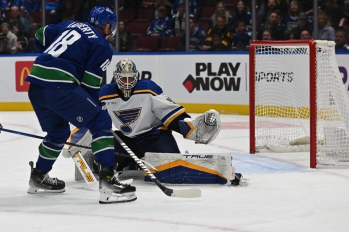 Miller pushed the Canucks’ lead to 4-0 with a short-handed goal. Pettersson intercepted a St. Louis breakout pass and sent Miller in for a breakaway at 8:52.