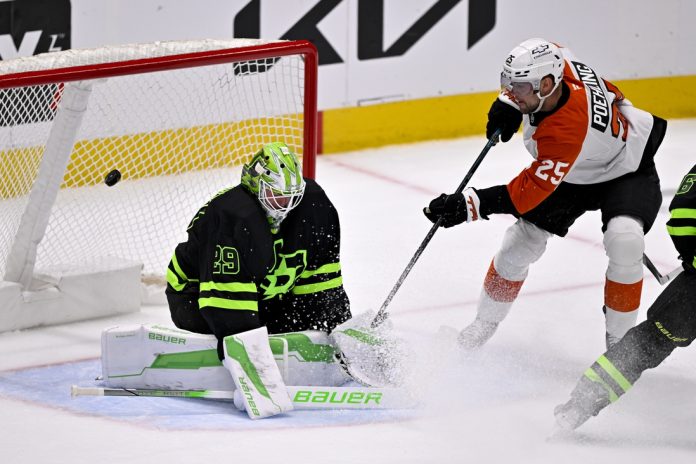 Ivan Fedotov stopped just one of three shots in the first period for the Flyers before he was replaced by Samuel Ersson, who finished with 15 saves.