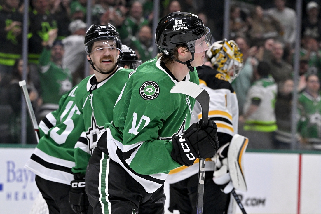 At 6:36, Dadonov doubled the Dallas lead on his fourth career penalty-shot goal. After being held by Mason Lohrei on a break-in, Dadonov worked down the slot and fired a wrister under Swayman’s stick-side arm.
