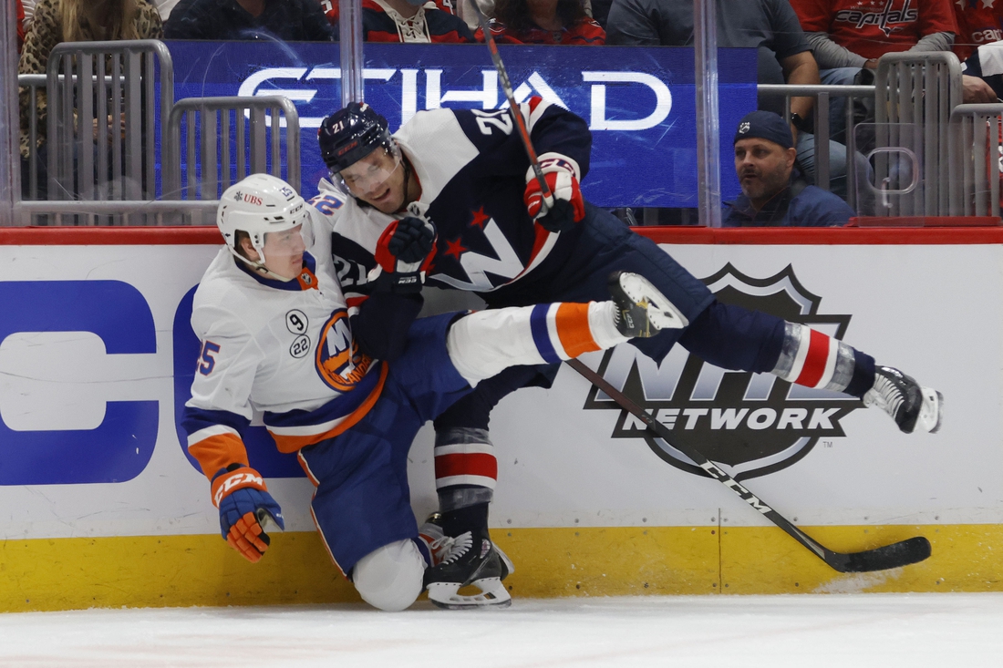 Noah Dobson scored the tiebreaking goal early in the third period Tuesday night for the visiting New York Islanders, who beat the Capitals 4-1 and prevented Washington from climbing out of an Eastern Conference wild-card spot.