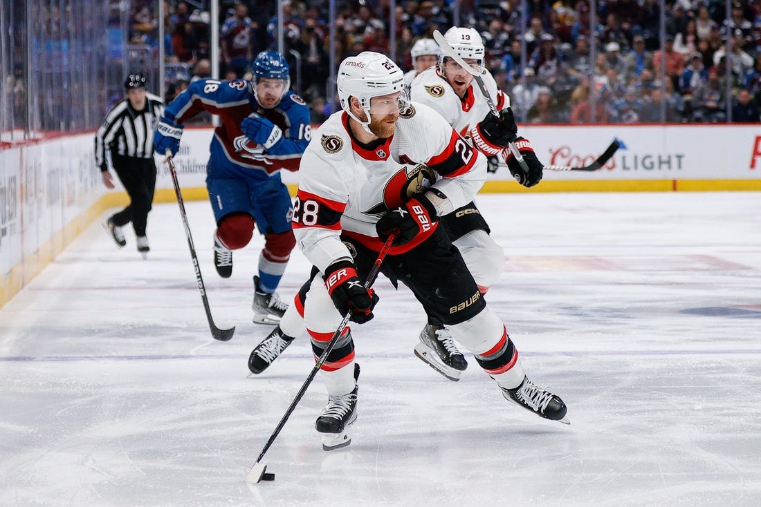 It stayed a two-goal game until midway through the second period when Lehkonen struck. He jumped off the bench, took a pass from Devon Toews at center ice and skated ahead of Senators defenseman Jake Sanderson. Forsberg made the initial save but Lehkonen was able to stuff it in at 9:05.