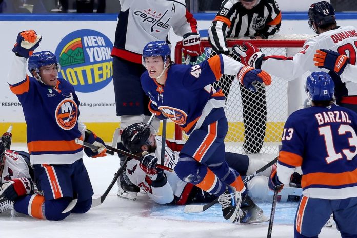 The Capitals doubled the lead almost exactly 12 minutes later. Tom Wilson got a piece of Jean-Gabriel Pageau’s pass and Islanders right winger Simon Holmstrom couldn’t corral the puck before Jakob Chychrun got his stick on it. The puck bounced to Protas, who whirled in the slot and fired a shot past Sorokin with 6:08 left.