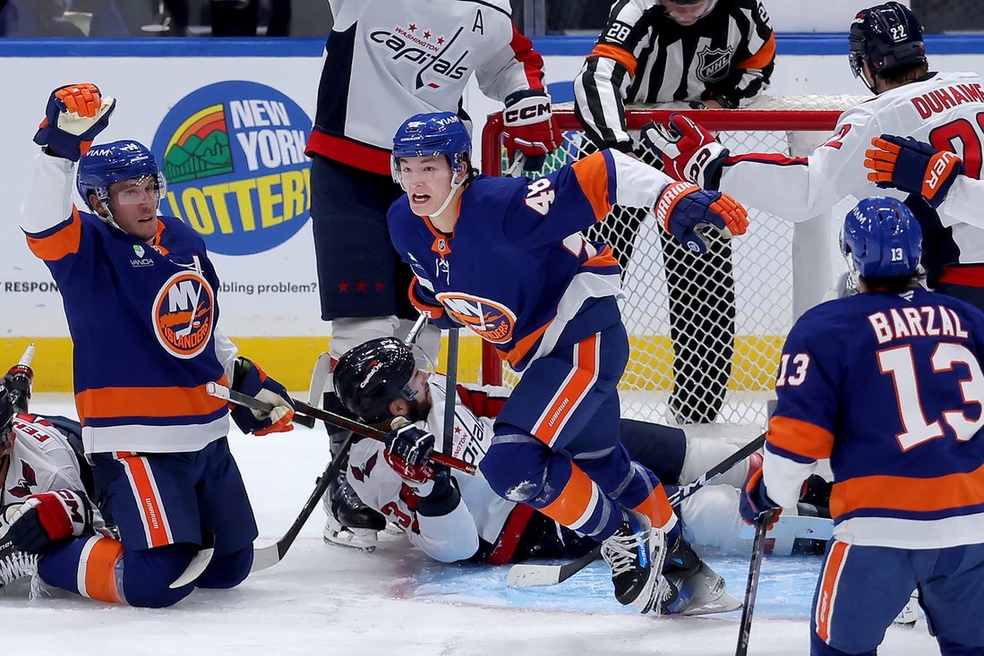 Fehervary opened the scoring just 1:50 after the opening faceoff. Alex Ovechkin’s shot from the blue line glanced off a kneeling Alexander Romanov and to Fehervary, who flicked a backhander beyond Sorokin’s stick.