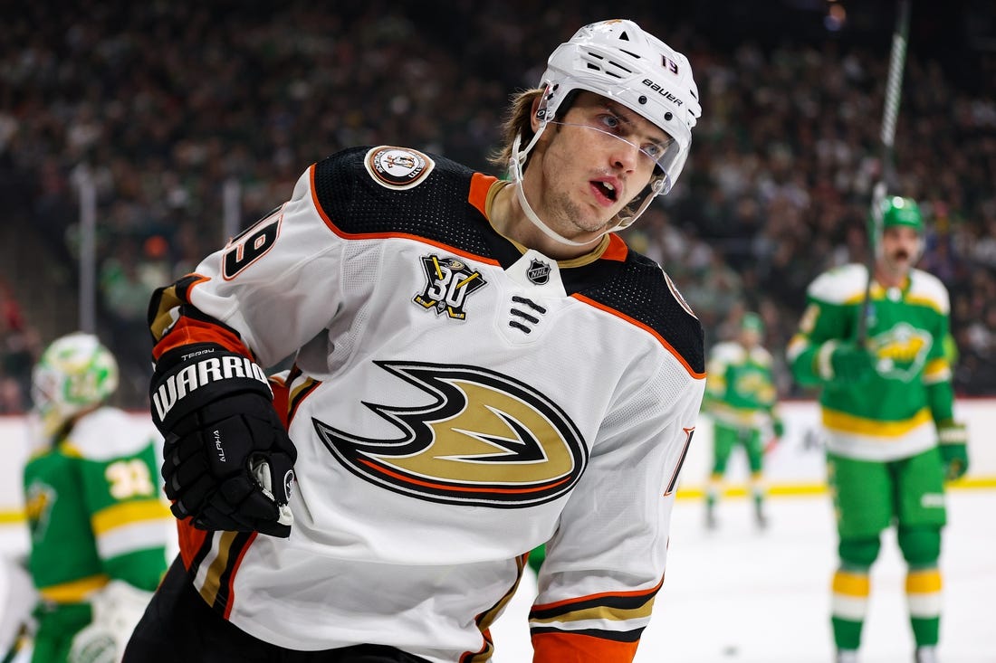 Troy Terry scored twice, including the go-ahead goal 11:40 into the third period, and the Anaheim Ducks held on for a 3-2 win over the Minnesota Wild on Saturday night in Saint Paul, Minn.