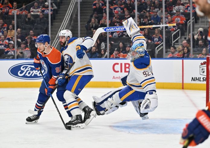 With Buffalo ahead 3-0, McDavid got the Oilers on the board 10 seconds into the third. He collected a loose puck along the right wall and brought it to the front of the net before putting a wrist shot over Lyon’s right pad.