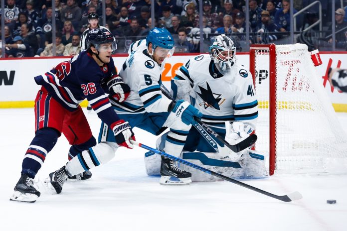 Ehlers answered after a San Jose turnover, putting in a wrist shot past Blackwood’s blocker side. Pionk then made it 4-1 with a power-play goal near the end of the period.