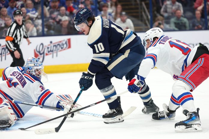 Alexis Lafreniere and Artemi Panarin each had a goal and an assist for New York, which moved ahead of Columbus into sole possession of the second wild-card spot. Igor Shesterkin made 21 saves for his fifth shutout of the season and second straight against the Blue Jackets.