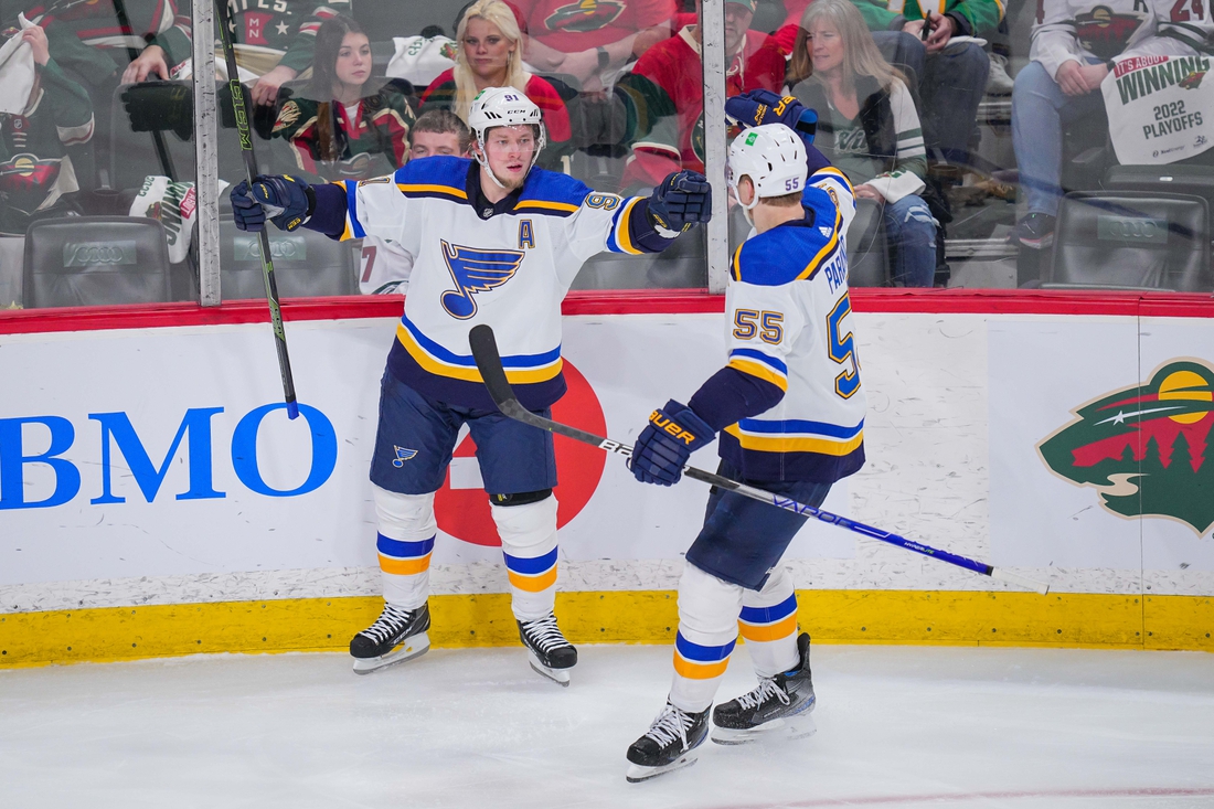 The Blues have put heavy emphasis on checking Kaprizov in this series, to no avail. His two goals gave him seven in the playoffs, which led all NHL players through Tuesday’s games.