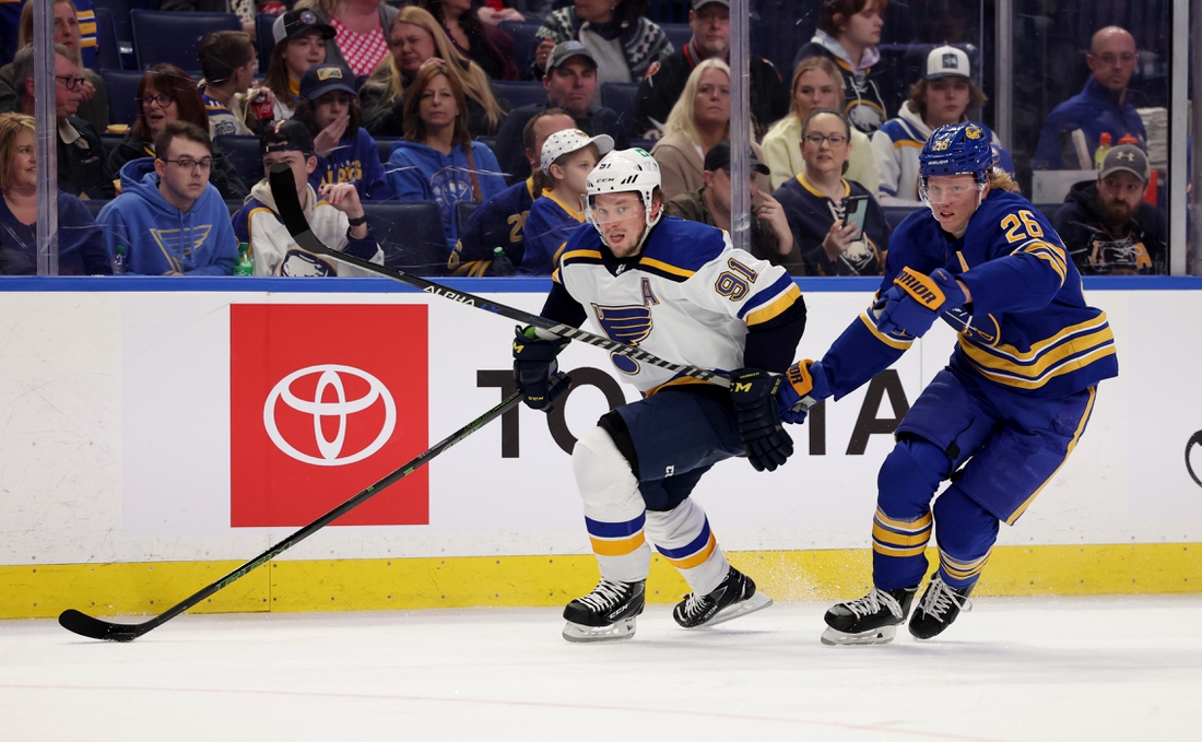 The Blues regained the lead less than 3 minutes later on a tic-tac-toe passing play from Thomas to Buchnevich to Tarasenko, who scored into the open side of the net.
