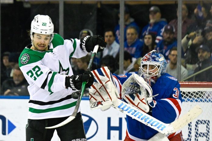 Dallas had taken a 2-1 lead at 9:32 of the third period. Mikko Rantanen finished off a 2-on-1 with Wyatt Johnston following an offensive-zone giveaway near the blue line by New York captain J.T. Miller.