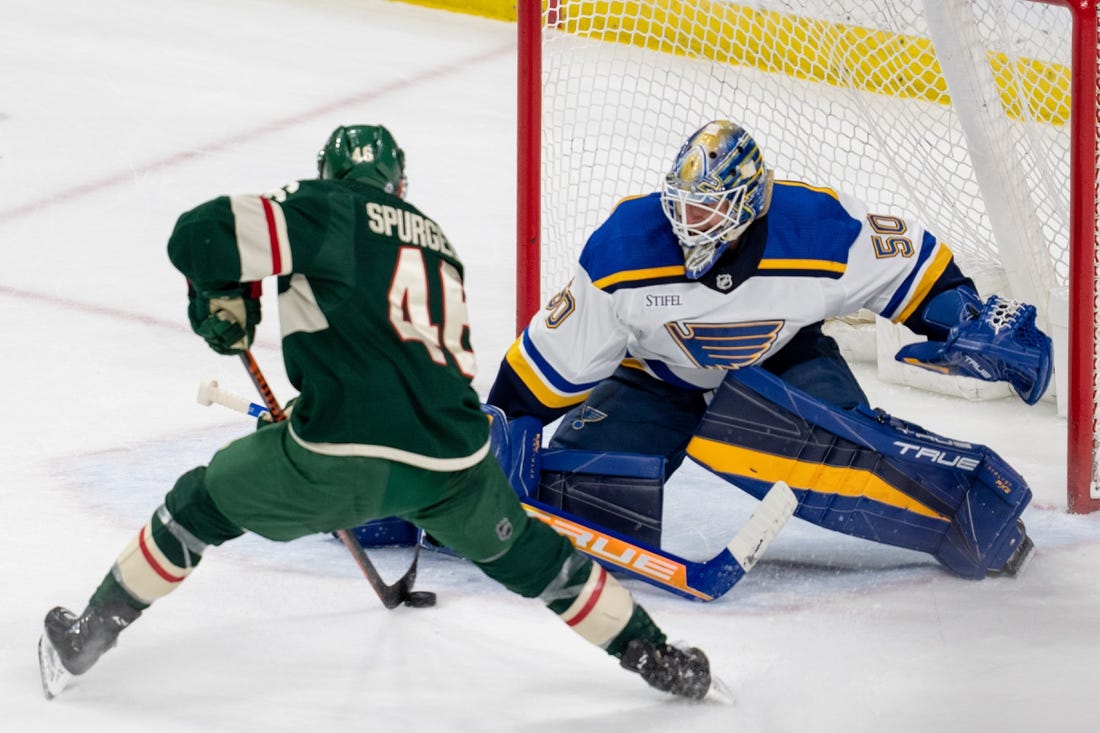 The Blues outshot the Wild 18-8 and controlled much of the first period’s 5-on-5 play. They struck first to take a 1-0 lead 5:19 into the game.