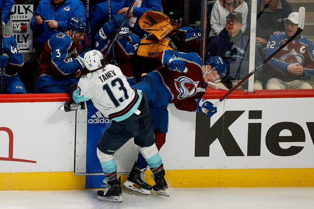 Seattle tied it when MacKinnon’s turnover led to Tanev’s goal at 17:30 of the third. It was Tanev’s 13th of the season.