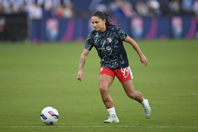 Debinha scored the Current’s first goal on a penalty kick in the 34th minute. Angharad James-Turner’s arm stopped a cross from going into the box and after a VAR review, the official awarded Kansas City a penalty kick that Debinha buried into the left corner.