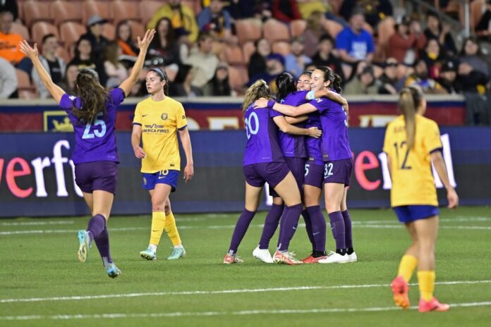 Orlando had chances to take a lead before halftime but came up short twice on point-blank headers off corner kicks. Kylie Strom headed the ball too high in the 39th minute, and Morgan Gautrat sent a second header wide right in the 41st minute.