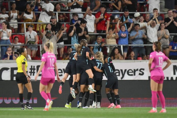 Gotham made a late push with time winding down, engineered by Crystal Dunn’s run upfield. Jenna Nighswonger made a cross to Bell, who corralled it with an outstretched leg before shooting it past San Diego goalie Kailen Sheridan to the far side of the net.